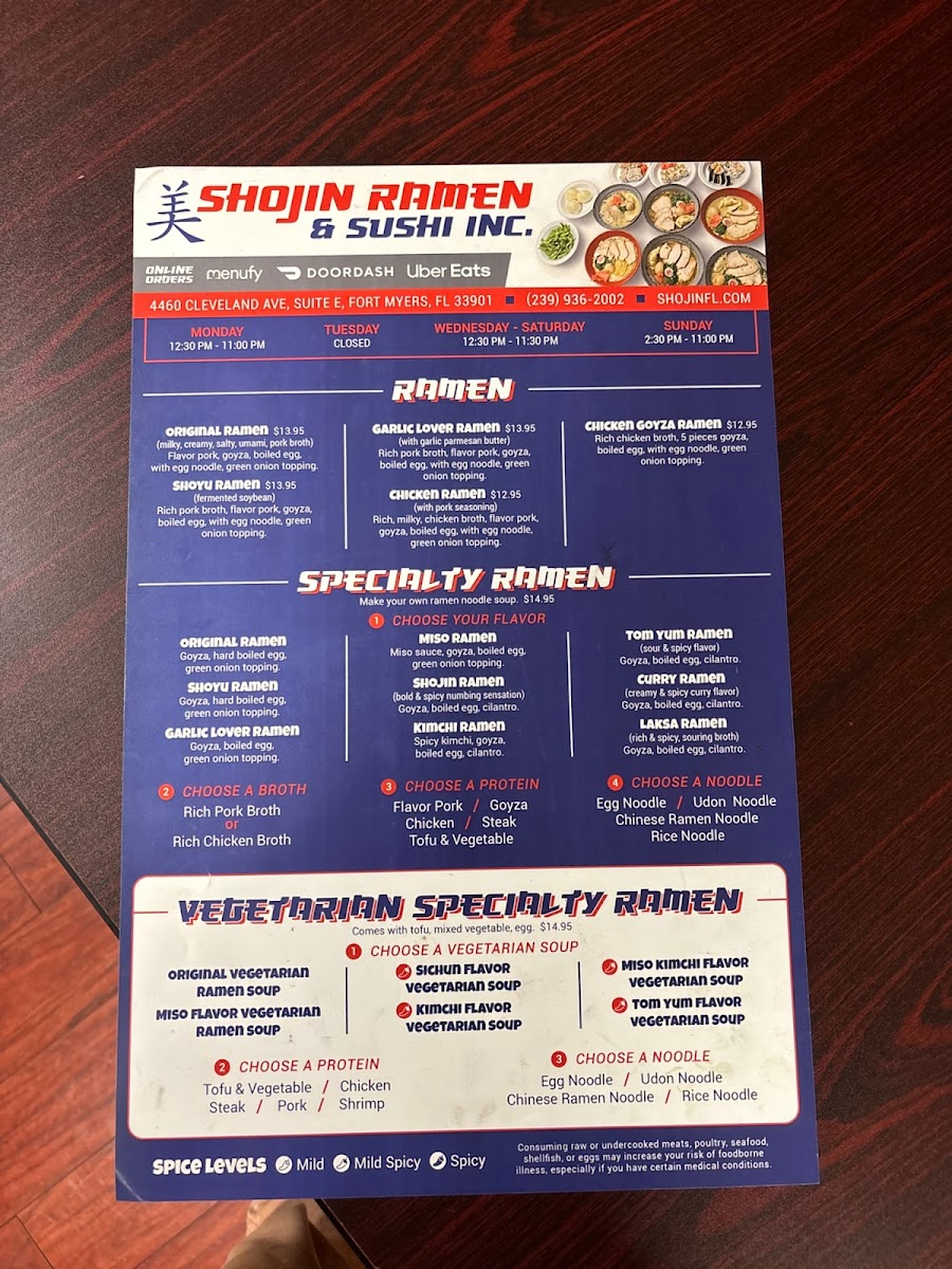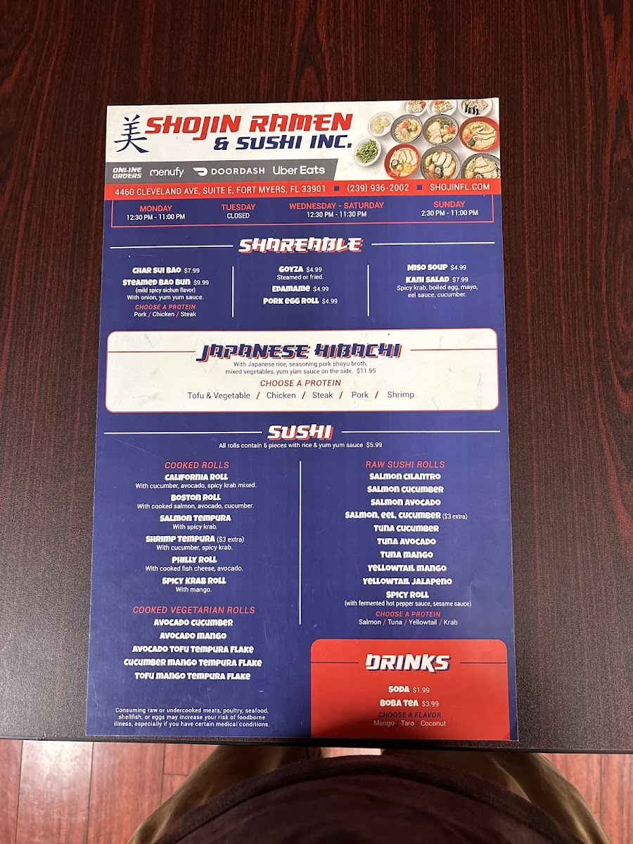 Welcome to SHOJIN RAMEN & SUSHI, your new go-to destination for authentic Japanese cuisine in Fort Myers. Nestled at 4460 Cleveland Ave Suite E, this charming eatery offers a menu brimming with flavor and creativity.